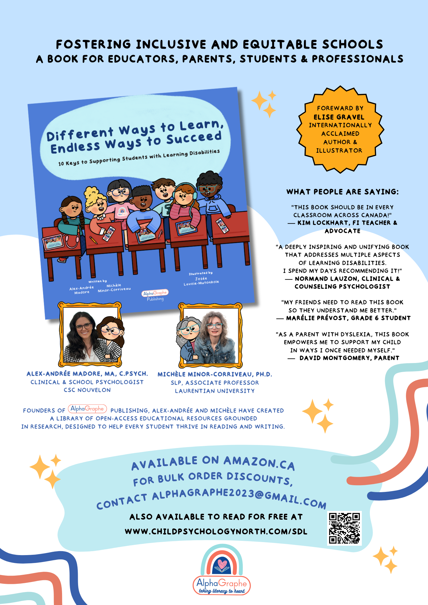 Pour connaitre comment augmenter l'exposition au français dans un contexte de minorité linguistique, ainsi que pour en apprendre plus sur le bilinguisme, le TDL, le TDAH et le langage écrit, dirigez-vous vers le site web de Chantal Mayer-Crittenden, Ph. D., Orthophoniste sudburoise.